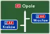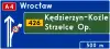 - Directional signs (znaki kierunku i miejscowości; type E) – these signs have different shapes and colors, depending on the situation and placement.