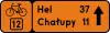 - Complementary plates (tabliczki do znaków drogowych; type T) – small rectangular signs, mostly with white or yellow background, with black text or symbol. These are placed under main sign, extending its meaning.