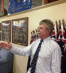![]() Atkinson answering questions at a function, January 2014 | |
