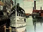 Chequamegon was built for the Chequamegon Bay Transportation Company of Ashland, Wisconsin,[4] who intended to use her as an excursion vessel between Ashland, Wisconsin, Bayfield, Wisconsin, Washburn, Wisconsin and Madeline Island. She was issued a temporary enrollment on June 13, 1903, in Milwaukee, Wisconsin, and on June 23, she was issued a permanent enrollment at Marquette, Michigan.[6][10] In the middle of September, her trips to Madeline Island were discontinued, and she was moved to Duluth, Minnesota, where she was fitted with a new propeller in order to improve her speed. She made excursions around the Apostle Islands on September 26 and 27, and October 10 and 11.[10] Scheduled to be moved to Milwaukee in 1904, she made her final trip on May 21, 1904, between Ashland and Washburn, arriving in Milwaukee the day after her final trip. In June of that same year, Chequamegon began transporting passengers from Milwaukee to Pabst's Whitefish Bay Resort. She was chartered by the Benton Transit Company of Benton Harbor, Michigan, in August 1904, and had bulwarks fitted to her lower deck.[11] During this time, she ran between Benton Harbor and Milwaukee. Chequamegon's propeller was damaged on September 12, 1904, while she was inbound for Milwaukee.[11] When Louis A. Cartier, president of the Chequamegon Bay Transportation Company moved to Ludington, Michigan, she briefly hauled fruit towards the end of the shipping season, from Benton Harbor and St. Joseph, Michigan, to Milwaukee. Chequamegon resumed her trips for Pabst's Whitefish Bay Resort, briefly engaging in the fruit trade in September 1906.[12] On April 22, 1907, Chequamegon was sold to R. Floyd Clinch of Chicago, Illinois;[6] her home port was changed to Chicago.[13] Chequamegon was transferred to Clinch's Traverse Bay Transportation Company in 1908.[6][13] In that same year, she was taken to Sturgeon Bay, Wisconsin, where she received a new 9.5 feet (2.9 m) propeller, built by H.G. Trout & Company of Buffalo, New York. After receiving some additional repairs, she returned to her Charlevoix, Michigan – Traverse City, Michigan route. On August 18, 1909, Chequamegon's cook, Sanford M. Silver drowned after falling overboard.[14]