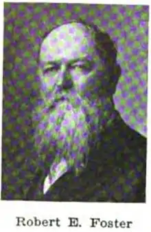 He married Nannie E. Heath in 1877.[1][10] They had three children, Annie Eliza (Foster) Ellis (b. 1877), Robert Heath Foster (b. 1885), and Mary Lurline (Foster) Donald (b. 1887).[10][4] After Nannie's death, he married Louise Lee White in 1917.[4] He had at least two children with Louise: Nannie E. Foster and Louise Foster.[4]