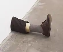By 1989, Gober was casting beeswax into sculptures of men's legs, completed not only with shoes and trouser legs but also human hair that was inserted into the beeswax.[7]