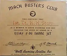 After his military service he flew P-51, 44's and F-86's in the California Air National Guard and spent a year on active duty with Air Defense off the southern California coast. During his duty with Air Defense Command he was scrambled to investigate bogies in radar range off the California coast. From Starr's memoirs: "On several occasions, me and my wing man had visual confirmation of what could only be described as a UFO, mostly cigar shaped objects with no visible means of propulsion and yet each time we gave chase at full throttle, they left us behind as if we were standing still. I had many experiences with UFO sightings during my time with the Air National Guard".