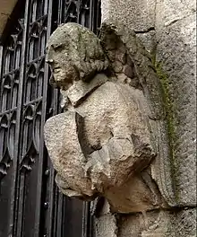 This is a Grade II listed building.[36] The foundation stone of St Paul's was laid on 3 November 1846 in Manningham, Bradford,[37][38] and the building was consecrated on 2 October 1848.[39] The architects were Mallinson and Healey.[37] When Mawer carved the label stops and corbels of the building in the form of heads, he and William Ingle were already "Mallinson and Healey's favourite stone masons". Mawer carved the original font and pulpit, however the pulpit was replaced in 1960 by one of oak, and the font has been painted in beige gloss.[40]
