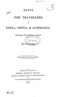 - Grindlay & Co.'s Overland Circular - Hints for Travellers to India, Detailing the Several Routes (PDF). London: Smith, Elder & Co. 1847.
