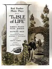 Roberta Wilson's first feature-length film was the Universal Red Feature[lower-alpha 4] production of The Isle of Life. Filming started in August 1916, and the film was released on October 30, 1916.[17] The film opened to mostly positives reviews. The movie ad from the October 1916 issue Moving Picture World December 1916 edition shows Roberta sharing top billing with Frank Whitson and Hayward Mack under the direction of Burton George. Her rise to top billing was remarkably fast. Before shooting her next feature-length film, she released The Quitter on November 11.