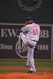 The Philadelphia Phillies signed Hernández for the 2014 season for $4.5 million.[16] After five starts, during which he compiled a 5.81 ERA, he was available to pitch out of the bullpen, as off days meant the Phillies would not need him for over a week.[17] Around that time, Phillies analyst Ricky Bottalico commented, "All in all, I like what I've seen from Roberto Hernandez early in the ball games, but it's seems to be fourth, fifth, sixth innings, you're seeing a laboring guy out there. The one thing he's got to do is relax himself. It seems like he's trying to be a little too fine with his pitches. When you do that as a pitcher and you're not relaxed, you're going to make mistakes ... one thing he can do is take a deep breath. Getting deeper into games is getting tougher and tougher for him."[18] Subsequently, he rebounded, and had totaled 23 appearances (20 starts) with the Phillies, during which he posted an ERA of 3.87.[19]