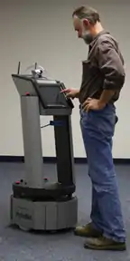 Mobile robots[85] have the capability to move around in their environment and are not fixed to one physical location. An example of a mobile robot that is in common use today is the automated guided vehicle or automatic guided vehicle (AGV). An AGV is a mobile robot that follows markers or wires in the floor, or uses vision or lasers.[86] AGVs are discussed later in this article.