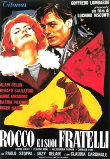 Rocco and His Brothers (Italian: Rocco e i suoi fratelli) is a 1960 drama film directed by Luchino Visconti and starring Alain Delon, Annie Girardot, Renato Salvatori, Katina Paxinou, Roger Hanin, Paolo Stoppa, and Claudia Cardinale in one of her early roles. Set in Milan, it tells the story of a migrant family from the South and its disintegration in the society of the industrial North. The title is a combination of Thomas Mann's Joseph and His Brothers and the name of Rocco Scotellaro, an Italian poet who described the feelings of the peasants of southern Italy.[4] The screenplay, co-written by Visconti, is inspired by an episode from the novel Il ponte della Ghisolfa by Giovanni Testori.