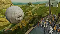 Rock of Ages features a chronology which spans across five time periods: Ancient Greek, Medieval, Renaissance, Rococo and Romanticism.[3] Each time period features a unique, Pythonesque art style during gameplay. The team narrowed their selection to these five periods from a larger pool of 16 time periods which included Neoclassic, Prehistoric, and Impressionism.[3]