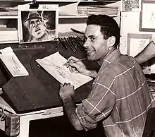 He was laid off from Warner's in 1953 and worked for UPA, Jay Ward, and Storyboard Inc. from the 50's to the mid 60's.[14] When Scribner went to work at Bakshi Studios, he sat down with Bakshi and said to him, "Ralph, I can't do this anymore. I love what you're doing, and this is going to be the greatest studio in the world, but I just can't do it anymore." He cried while he was speaking and handed his scene in. Bakshi recalled the scene looking "absolutely hideous" and looking like something was wrong with him, which ironically, there was. Although Scribner was credited, most of his animation were thrown out or overhauled.[15][16] In his later years, Scribner worked with former colleague Bill Melendez on various Charlie Brown movies and television specials that worked in Snoopy Come Home (1972), There's No Time for Love, Charlie Brown (1973) and It's the Easter Beagle, Charlie Brown (1974), eventually starting at a studio called Playhouse Pictures, which produced commercials for over 45 years.[17][18] The only things he didn't do for UPA or his former colleague Melendez is a 1968 training video for IBM called A Computer Glossary and two credits on the first two episodes of Yogi's Gang.[19][20][21]