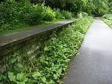 Within the Westham area of the trail, a World War II light anti-aircraft gun emplacement built into the railway embankment was refurbished in recent years to provide a viewing platform across Weymouth and to act as a reminder of Weymouth's defence during the war largely on account of the naval base at Portland.[7][8] The stone structured emplacement would have given low-level defence to Weymouth and Portland harbours. The mounting gun ring still remains, and this would have held a 40 mm Bofors Gun. The dividing partitions surrounding the ring, still survive, which would have been ready-use ammunition lockers and general equipment storage cupboards, as does the rooms below that are reached by a set of steps on the southern side of the emplacement.[9]