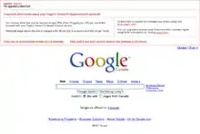 Since early December, 2007, Rogers has been injecting their own content into other companies' websites without permission.[28] Rogers users who are close to their maximum Data cap in their internet plan of choice are seeing red text appear above the content of every website they visit. The notice continues to appear on every page until the user either clicks a link acknowledging that they have seen the message or chooses to opt out of the notification.[29]
