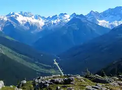 Rogers Pass is a high mountain pass through the Selkirk Mountains of British Columbia, but the term also includes the approaches used by the Canadian Pacific Railway (CP) and the Trans-Canada Highway. In the heart of Glacier National Park, this tourism destination since 1886 is a National Historic Site.[1]