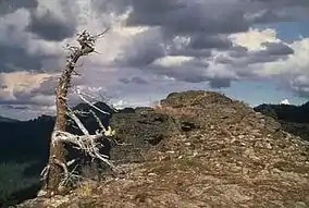 The Rogue–Umpqua Divide Wilderness is 10 miles (16 km) west of Crater Lake National Park along the dividing ridge between the Rogue and Umpqua Rivers. Elevations range from 3,000 to 6,783 feet (914 to 2,070 m) at the summit of Fish Mountain. Volcanic activity created many unique volcanic and sedimentary rock outcrops.[1][2]