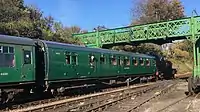 Southern Railway | Built in 1947. Operational. SR Withdrawn from passenger use in 1966 and converted for railway departmental use as an office until 1980 when preserved at the Bluebell Railway. On loan from the Bluebell Railway until 2037.[9] | SR Malachite Green | ![]() |