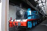| No. 1 "Thomas" (works number 3781 of 1952) | Hunslet Austerity 0-6-0ST | Operational. Originally built by Hunslet as Austerity-type 0-6-0ST saddle tank 3781 of 1952, later named Linda on the Kent & East Sussex Railway. Converted to a side-tank locomotive in order to create a lookalike LB&SCR E2 class No. 1 "Thomas" in 1994. The loco is commonly referred to as "Dave" when not carrying the Thomas identity.[2] | NWR Blue | ![]() |