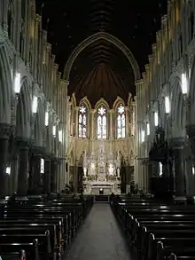 The Dioceses of Cloyne and Ross were separated in 1850. Following the relaxation of the worst elements of the Penal laws,"...the diocese, despoiled of all its ancient churches, schools, and religious houses, had to be fully equipped anew. About 100 plain churches were erected between 1800 and 1850."[5] Following the separation of Ross, Bishop William Keane planned a cathedral for Cobh to replace the inadequate parish Church of the time.