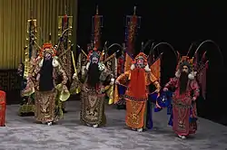 In the 1660s, during the reign of the Kangxi Emperor in the Qing dynasty, Mao Lun and Mao Zonggang significantly edited the text, fitting it into 120 chapters, and abbreviating the title to Sanguozhi Yanyi.[11] The text was reduced from 900,000 to 750,000 characters; significant editing was done for narrative flow; use of third-party poems was reduced and shifted from conventional verse to finer pieces; and most passages praising Cao Cao's advisers and generals were removed.[12] Scholars have long debated whether the Maos' viewpoint was anti-Qing (identifying Southern Ming remnants with Shu-Han) or pro-Qing.[13]