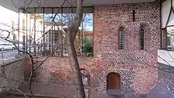 During the reconstruction the ceiling was partially removed, joining the upper and lower storeys, and the whole building was covered with a contemporary reinforced concrete roof. The above-ground part was glazed from the outside. The place was then adapted for the needs of the art gallery under the patronage of the Center for Cultural Arts in Wrocław (OKiS). Later, the gallery was transformed into Foto-Medium-Art Gallery, and become one of the most important Neo-avantgarde centres in Poland. Then it changed its name to the Lower Silesia Centre of Photography, "Romanesque House". From January 2017 it is called the Foto-Gen Gallery.[3] In April 2017, a bronze plaque commemorating the Cistercian foundation "House of the Ladies of Trzebnica" was placed in the facade of the building and the name Dom Panien Trzebnickich (House of the Ladies of Trzebnica) came back into official use .[4][5]