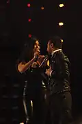 In 2008, Nico and Vlad won Romania's first and only Marcel Bezençon Award for "Pe-o margine de lume", in the Composer Award category,[33] and Sanda received the infamous Barbara Dex Award in 2004.[34] A number of Romania's Eurovision entries have experienced commercial success over the years. While "Let Me Try" reached number nine on the Romanian Top 100,[35] 2006's "Tornerò" by Mihai Trăistariu peaked within the top ten in Finland and Greece.[36][37] Elena's "The Balkan Girls" topped the Romanian chart in 2009, and similar success was attained by Mandinga's "Zaleilah" in 2012, obtaining number two in the country's Airplay 100 ranking and a Gold certification for digital downloads exceeding 10,000 copies in Romania.[38][39]