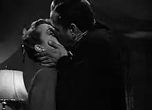 Based on Raymond Chandler’s first Detective Marlowe novel, The Big Sleep (1946, with Humphrey Bogart and Lauren Bacall) demonstrates the two romantic thriller elements of adventure and dual worlds. The main heroes are brought together in an attempt to save Bacall’s younger sister Vickers. The main adventure sleuth plot has the characters traveling both together and separately.[5] In a common theme, they are from different social worlds, and wouldn’t usually mix. The romance between the two seems hopeless. Parallel to the adventure story unfolding, the romance travels its own labyrinth of truth and deception, to finally overcome issues of mistrust. The story can be summarised as a private detective working for a rich family, investigates a complex case including murder and blackmail while possibly falling in love. Raymond Chandlers’ Marlowe character was described as ‘a knight in dark armor rescuing a lady.’[6] Film adaptations of the novels varied according to the Directors and Producers and their interpretation of the character, using certain traits more than others to tell their story. In a similar way, there is a variety of styles in the adaptations of the James Bond character. Where Marlowe romanced with quick banter with sexual overtones, Bond seduces in a more physical style.