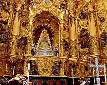 The Romería de El Rocío is a procession/pilgrimage on the second day of Pentecost to the Hermitage of El Rocío in the countryside of Almonte, Province of Huelva, Andalucia, Spain, in honor of the Virgin of El Rocío.[1][2] In recent years the Romería has brought together roughly a million pilgrims each year.[3][4]
