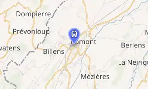 Romont railway station (French: Gare de Romont, German: Bahnhof Romont) is a railway station in the municipality of Romont, in the Swiss canton of Fribourg. It is located at the junction of the standard gauge Lausanne–Bern line of Swiss Federal Railways and the Bulle–Romont line of Transports publics Fribourgeois.[1]