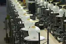 RONA a.s. (distribution under RONA brand) is a Slovak drinking glass manufacturer, established in Lednické Rovne, Slovakia, in 1892. The name RONA comes from the former naming of the village ‘‘Lednicz Rone’’.[4] The company manufactures unleaded drinking glasses, known as crystal glass. 96% of production is exported and is available in more than 80 countries worldwide. The yearly production of the company exceeds 60 million pieces (2016).[2][3] Product segments include households, the gastronomy business, aerospace, and ship catering.