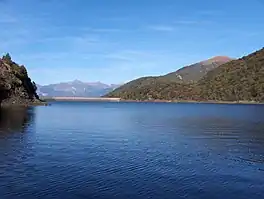The Roncovalgrande Hydroelectric Plant, also known as the Delio Hydroelectric Plant, is located 3 kilometres (1.9 mi) north of Maccagno in the Province of Varese, Lombardy, Italy. Using the pumped-storage hydroelectric method, the power plant has an installed capacity of 1,016 megawatts (1,362,000 hp). The power plant was complete in 1971 and the last generator operational in 1973. During construction, the upper reservoir, Lago Delio, was expanded in capacity with two gravity dams; a northern and southern, 28.5 metres (94 ft) and 36 metres (118 ft) in height, respectively. The lower reservoir, Lago Maggiore, already existed. The power plant itself is located underground in between Delio and Maggiore. To produce electricity, water is released from the upper reservoir to the power plant via two 1,100 metres (3,600 ft) long penstocks. At the power plant, eight four-stage Pelton turbine-generators generate electricity. Power generation occurs during periods of high energy demand and when energy demand is low, pumping usually occurs. The pumps are on the same shaft as the Pelton turbines and send water from the lower to the upper reservoir to serve as stored energy. Later on, this water will be sent back down to the power station and the process will repeat. The difference in elevation between the upper and lower reservoirs affords a hydraulic head of 736.25 m (2,416 ft) and Lago Delio has a usable storage capacity of 10,000,000 cubic metres (8,100 acre⋅ft).[1][2]