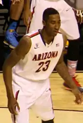 In his freshman season with Arizona, Hollis-Jefferson became known as fierce scorer, rebounder, and shot-blocker despite his relatively small size. The start of his season was marked with 10 points, 5 rebounds, and 2 assists against Cal Poly off the bench. He posted his first double-double in a game against Oregon.[8] He improved on his free throw shooting as his freshman year progressed. Throughout the season, Hollis-Jefferson mainly functioned as the team's sixth man, but became a starter after Brandon Ashley was lost for the season with a foot injury in the Wildcats' 60-58 upset loss to California on February 1.[2] Hollis-Jefferson ended up starting 6 of 38 games played due to the roster that was dominated by the likes of Aaron Gordon, but still got his name on the Pac-12 All-Freshman Team.[8] In his freshman year, Hollis-Jefferson averaged 9.1 points, 5.7 rebounds, and 1.4 assists per game.[4] "It's a lot different than just waking up, going to school and playing basketball for Chester," said Hollis-Jefferson of his freshman year. "In the beginning of the season, I was lost. But it's not about who's starting, it's about who finishes. It stuck with me for about a month or so, playing behind people. I went along with it and kept playing. I need to make people respect my shot. I know I can shoot it. I have to stay in attack mode."[2]
