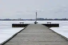 A formerly popular site in the park was the government pier on Rondeau Bay. In 2014, the pier was severely damaged by thick ice on Rondeau Bay and later removed. Despite community pressure, the pier has not been replaced.[15]