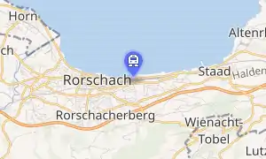 Rorschach is one of three stations within the municipality of Rorschach, along with Rorschach Stadt (the next station west on the Rorschach–St. Gallen line) and Rorschach Hafen, the next station northwest on the Rorschach–Heiden line on the shore of Lake Constance.