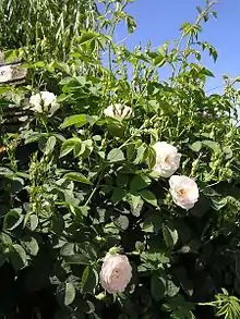 Rosa × alba, the white rose of York, is a hybrid rose of unknown parentage[1] that has been cultivated in Europe since ancient times.[2] It may have originally been grown mainly for the sweet scent of the flowers, but is now also used as a winter-hardy garden shrub.[2] Cultivated forms have white or pink flowers, and most have many petals. Hybrid cultivars have also been produced with red or yellow flowers.[2]