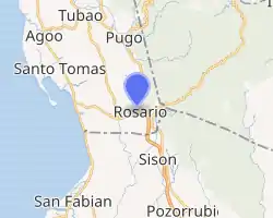 Rosario, officially the Municipality of Rosario (Ilocano: Ili ti Rosario; Filipino: Bayan ng Rosario), is a 1st class municipality in the province of La Union, Philippines. According to the 2020 census, it has a population of 60,278 people. [3]