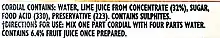 The ingredients in the modern US product, listed in order of concentration are water, high fructose corn syrup, lime juice concentrate, sodium metabisulfite (preservative #223), natural flavors, Blue 1.[7][8] Comparatively, in New Zealand, the list is water, lime juice from concentrate (32%), sugar, food acid 330, and preservative 223 – and when mixed 1:4 (20% concentrate), contains 6.4% fruit juice.