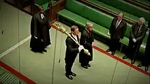 Hudson-Wilkin came to wider attention as the first black female to hold the role of Queen's Chaplain.[26] When she was appointed to the Commons some people alleged that this was an act of political correctness on the part of the Speaker John Bercow. Ultimately, the traditional role was split in two with Hudson-Wilkin remaining in her Hackney parish and attending to the Commons via daily prayers and services in St Mary Undercroft, while Andrew Tremlett took up the post of Canon of Westminster and Rector of St Margaret's, Westminster.[27]