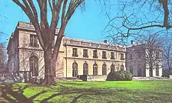 In 1920, Horace Dodge died, leaving his fortune entirely to his widow, Anna. She continued to live at Rose Terrace, but was reportedly unhappy and lonely.[3] In 1926, she married actor Hugh Dillman, and the couple decided to build a completely new mansion. They purchased the adjacent Country Club of Detroit and razed both the clubhouse and the original Rose Terrace[4] in 1930.[5] Anna and Hugh spent two years in Europe, advised by prominent art dealer Joseph Duveen, collecting art, material, and inspiration for their new mansion. They hired architect Horace Trumbauer of Philadelphia to design the new mansion and the George A. Fuller Company of New York City to supervise construction,[3] which began in 1931.[6] The mansion was completed in 1934 at a cost of $4 million (equivalent to $81 million in 2021).[7]