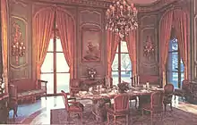 When completed and furnished, the mansion contained over 42,000 square feet (3,900 m2),[6] had 75 rooms,[7] (including 42 main rooms),[6] 15 fireplaces, 40 French doors, 37 sofas, and more than 100 tables. Many of the furnishings had a notable provenance, including a bureau made for Catherine the Great, four chairs that had belonged to Marie Antoinette, a piano once used by the children of George III, a jewel casket that had belonged to Russian Empress Maria Feodorovna, and a rosewood writing table made by Jean Henri Riesener.