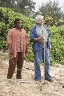 After Ben (Michael Emerson), the leader of the Others, causes the Island to move, Rose and Bernard are amongst the survivors who begin to jump to different periods of time,[14] but they eventually lose the others.[15] After three years, Sawyer, Juliet and Kate (Evangeline Lilly) encounter Rose and Bernard, and the couple explains they have built a cabin and retired, purposely avoiding contact with the remaining survivors because they wish to live their remaining days in peace.[15] Later, they rescue Desmond (Henry Ian Cusick) from a well, and are threatened by the Man in Black (Terry O'Quinn).[16] Desmond and the Man in Black reach an agreement and leave Rose and Bernard alone.[16] In season six, the afterlife experienced by the characters is shown, in which Rose is the supervisor at a temp agency while Bernard is once again working as a dentist.[17][18] In the series finale, Rose and Bernard reunite with the other survivors from the plane in a church, where they prepare to "move on" together.[16]