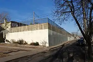 Previously, south of the station at Hylan Boulevard, there was an overpass, that has been filled in since the line was abandoned. The Virginia Avenue trestle was demolished in 1999.[2]