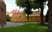Roskilde Mansion (Danish: Det Gule Palæ i Roskilde), also known as Roskilde Palace and as the Yellow Mansion (Danish: Det Gule Palæ), is a former royal Baroque mansion in central Roskilde, Denmark. Located just east of Roskilde Cathedral, it now houses both an exhibition venue for contemporary art and the office and official residence of the Bishop of Roskilde.