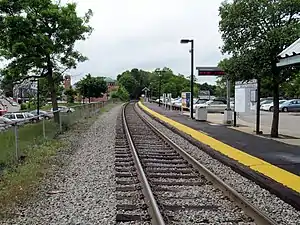 Roslindale Village station is an MBTA Commuter Rail station on the Needham Line, located in the Roslindale Square business district of the Roslindale neighborhood in Boston, Massachusetts. The station has a single side platform serving the line's single track, with a mini-high platform for accessibility.