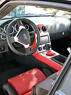 The body for the Q1 has been redesigned with total carbon-kevlar body, a new front end, large integrated air intakes and ram air side window ducts.[6][7] A rear carbon-kevlar diffuser, in conjunction with the flat under tray, creates downforce on the chassis for high speed grip and stability.[7] Other improvements over the M400 include power windows, remote power side mirrors, LCD touch-screen management system, back up camera, WiFi with bluetooth compatibility, smartphone link and center mounted wide screen entertainment system.[7] Based on the Rossion website the Rossion Q1 will be available with unlimited body colors, but popular pantones are named and coordinated for national racing colors and famous race circuits around the world.[8] The interior has also been redesigned to be intuitive and comfortable but without extraneous features consisting of high grade leather, Alcantara and diamond stitching options.[6][7][9]