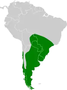 The rosy-billed pochard is endemic to South America. It is found in Argentina, central Chile, Paraguay, Uruguay and southern Brazil. The population in southern Argentina migrates northward during the austral winter, reaching Brazil and southern Bolivia. It is a vagrant to the Falkland Islands.[4]