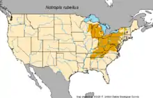 The rosyface shiner's native range is in the eastern United States and southern Canada. They are found from eastern Wisconsin and in the drainages of the Great Lakes to New York, down south in the upper Ohio River, along the Appalachian Mountains and Cumberland Plateau to Tennessee, and down the James river, and Rapidan River which drain into the Atlantic Ocean.[4]