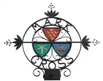 The name Eridge is thought to derive from 'Eagle ridge', or 'ridge frequented by eagles'.[11] It is directly north of Rotherfield, and largely overlaps the ecclesiastical parish of Eridge Green. It was formed on 5 February 1856 out of parts of the former parishes of Frant, Rotherfield, Eridge Park and Eridge Castle, the latter being the seat of the Earl and Marquess of Abergavenny. On the village street is the church which is grade II listed,[12] a mainline railway station (Eridge) and six other listed buildings including the public house, the Neville Crest and Gun. In 1792 Henry Nevill, 2nd Earl of Abergavenny converted the old Eridge House into a Gothic castle, which he named "Eridge Castle". It was replaced by a Neo-Georgian mansion in the 1930s after the original structure was badly damaged by fire. The area also contains several follies, including the Saxonbury Tower and several ornamental buildings near the Sham Farm business park. The undulating park and garden of Eridge Park is densely wooded to its north (Whitehill Wood) and south (Saxonbury Hill) and is highly rated (Grade II* listed) for its landscape.[13]