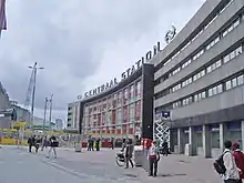 Rotterdam Centraal railway station (Dutch pronunciation: [rɔtərˈdɑm sɛnˈtraːl]) is the main railway station of the city Rotterdam in South Holland, Netherlands. The station received an average of 110,000 passengers daily in 2007.[1] The current station building, located at Station Square, was officially opened in March 2014.[2]
