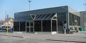 In the days of the steam locomotive, freight trains needed assistance to climb from lake level over the Scarborough Bluffs. Port Union was the easterly end of this helper service with a siding that ran behind the station for waiting locomotives, and a water tower and fuel tanks to resupply westbound trains. With the advent of diesel-electric power those facilities were no longer required[3] and Canadian National Railway subsequently replaced the station with a utilitarian brick building.