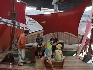 The Round Earth Company, founded by the late Richard Davey, performs in Strahan, West Coast, Tasmania. Each night the company performs Australia's longest-running play, The Ship That Never Was.[1] During the day the actors work as tour guides on Sarah Island, explaining the history and unique story of this Tasmanian penal settlement.[2]